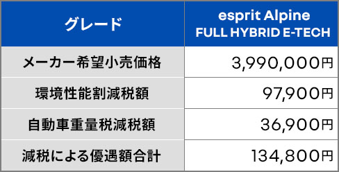 ■ルノー キャプチャー エスプリ アルピーヌ フルハイブリッド E-TECHの税制優遇措置